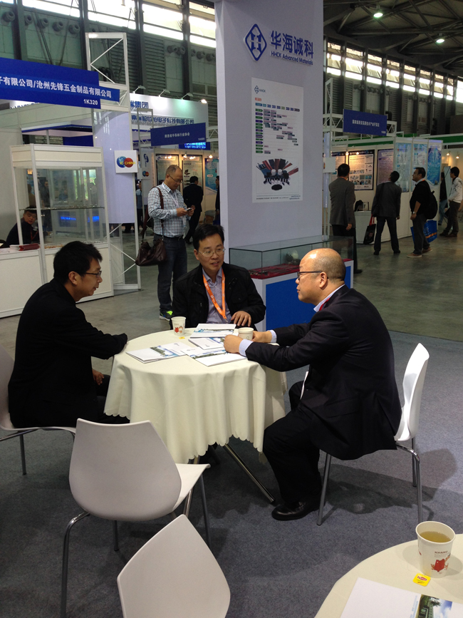 江蘇華海誠科在第十二屆IC CHINA 展會上的展區(qū)公司領(lǐng)導(dǎo)與客商熱情交談